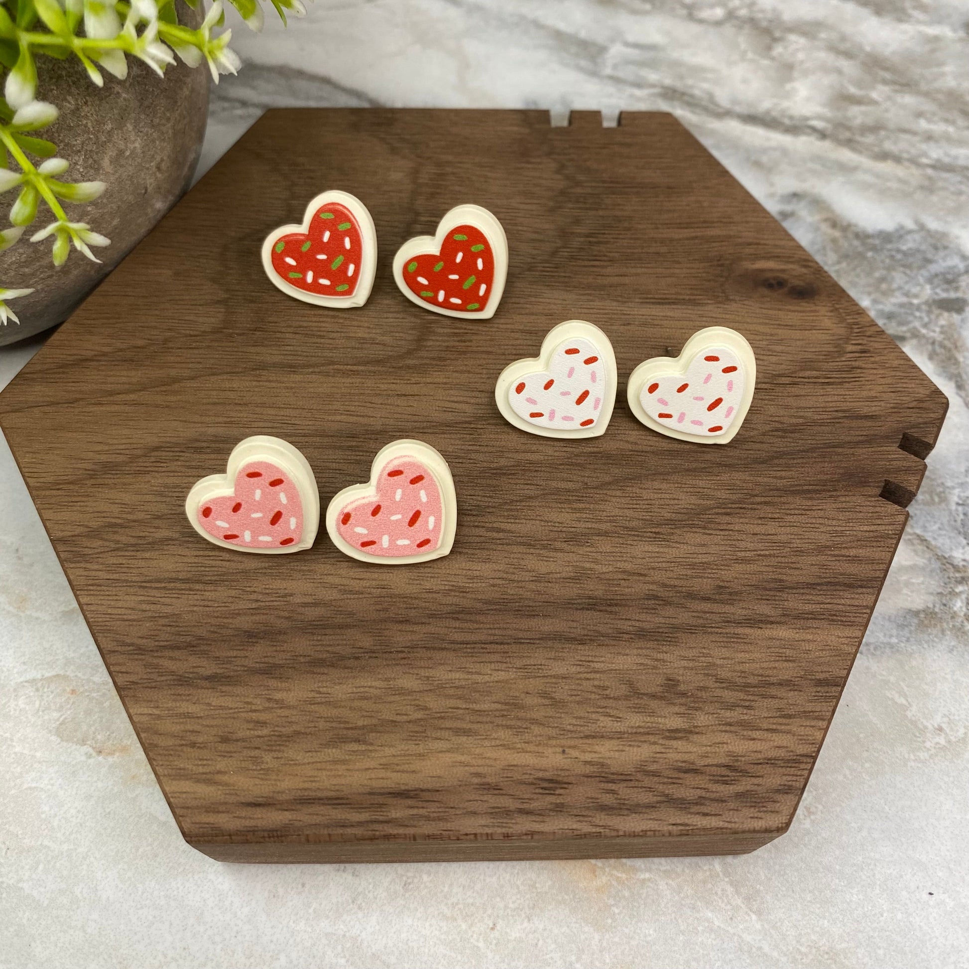 Acrylic Stud Earrings - Heart Cookies