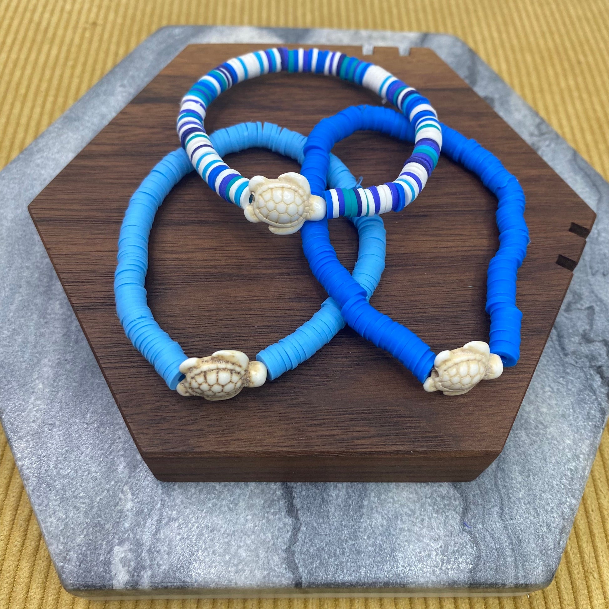 Bracelet - Clay + Stone - Green & Blue Ivory Turtle