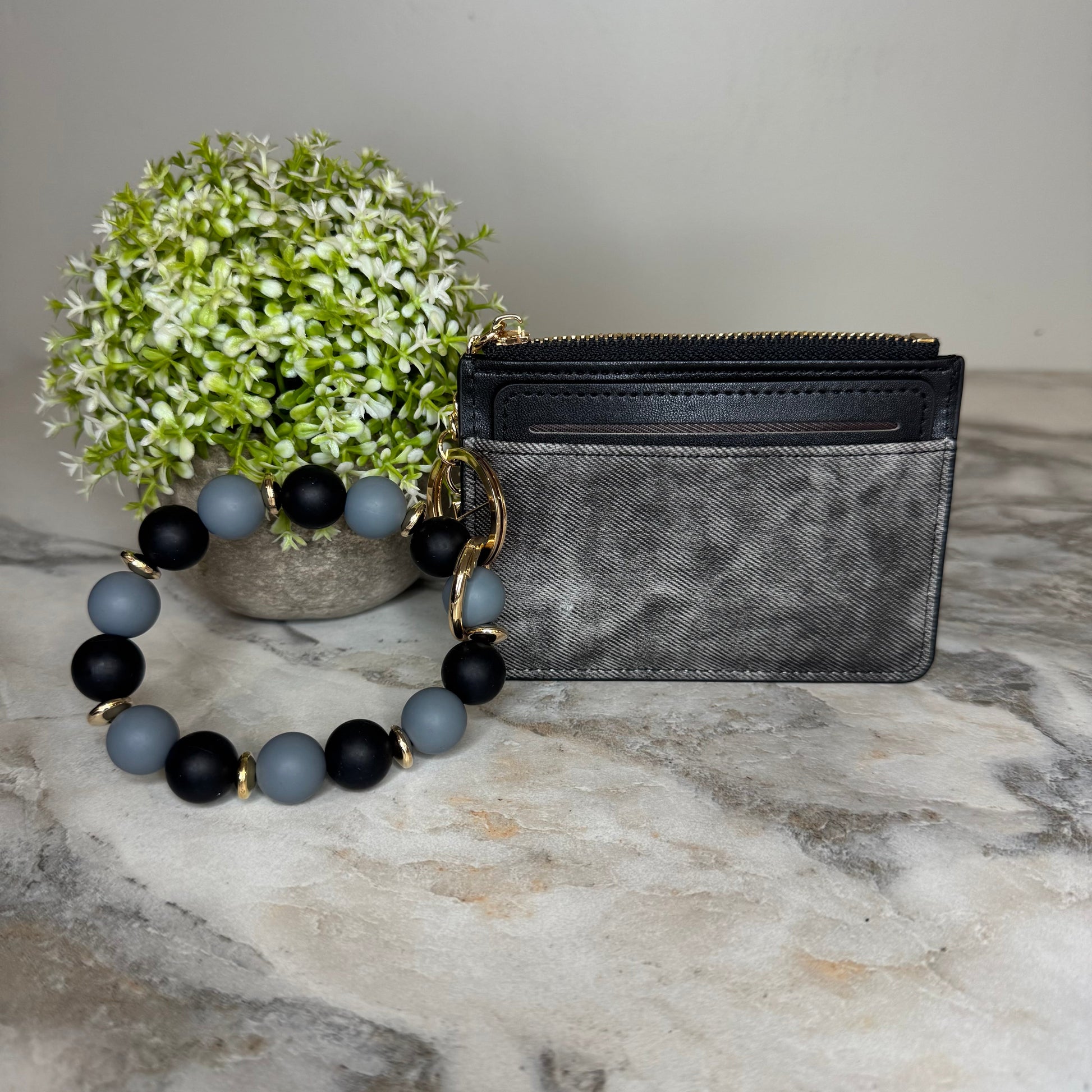 Denim Suede Bracelet Keychain & Card Holder Wallet