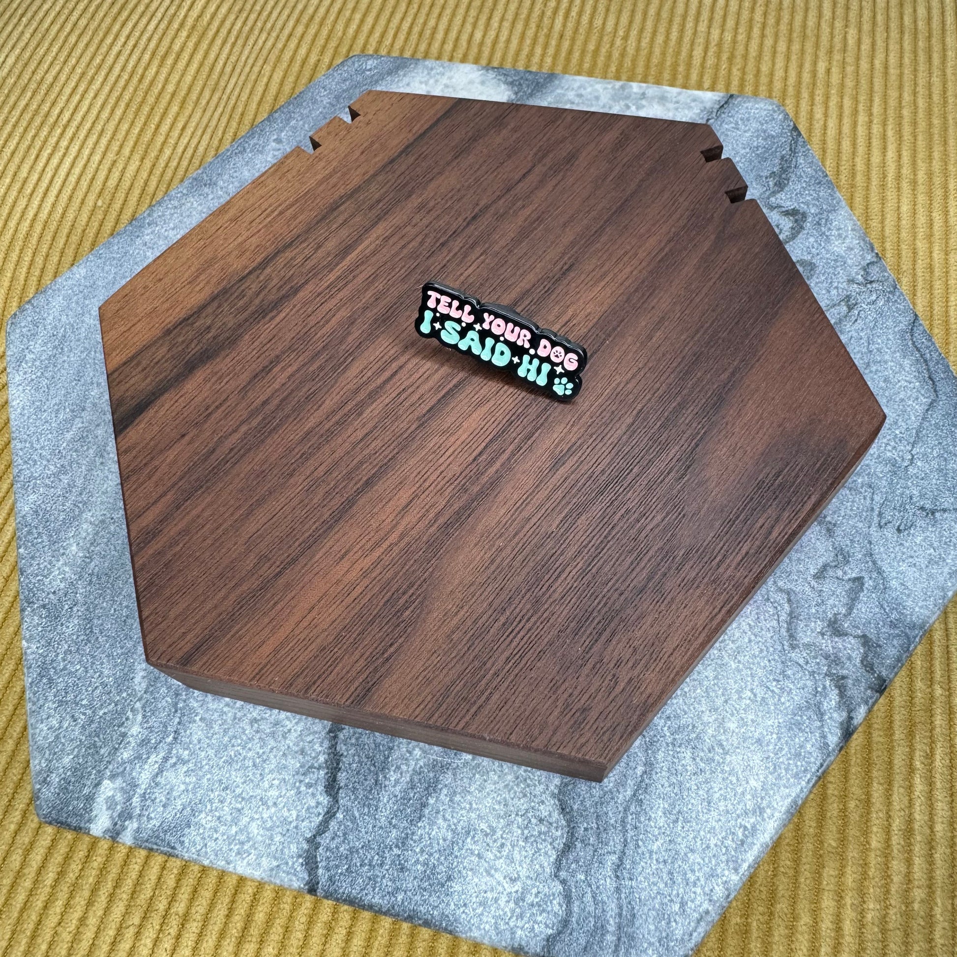 Metal pin, rubber backing.