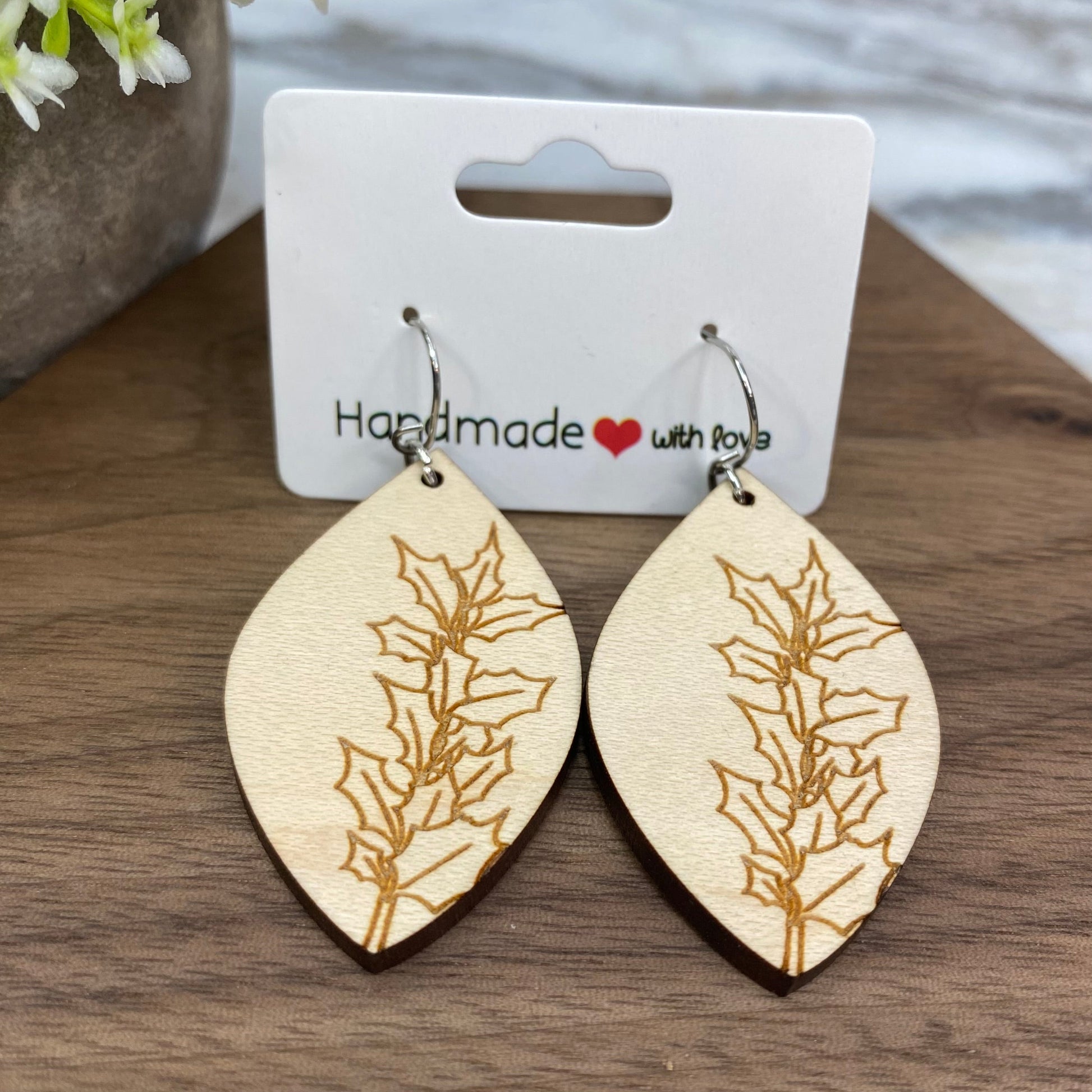 Wooden Dangle Earrings - Plant Leaves